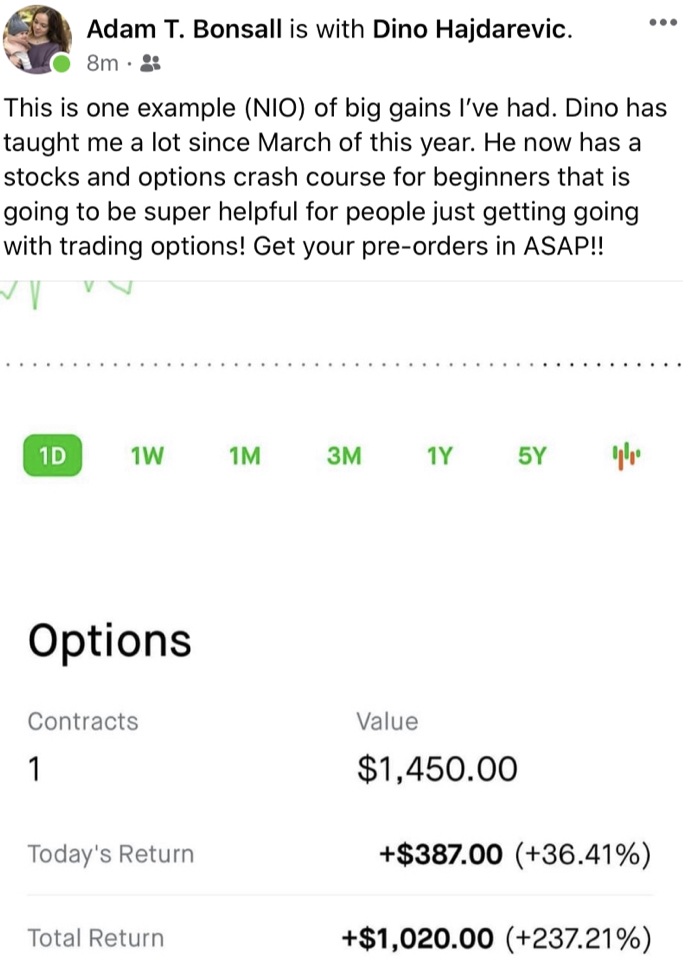 My goal in this E-book is to show everyone simple strategies that I used and had success with! More so I want to open peoples eyes and show them the benefits of investing in stocks or buying and selling options. I've invested thousands of dollars on my road to becoming a profitable trader and I've taken all that beneficial information and comprised it into this one e-book! Theres no better feeling then waking up in the morning and having already made a couple hundred or a couple thousand and haven't even gotten out of bed!